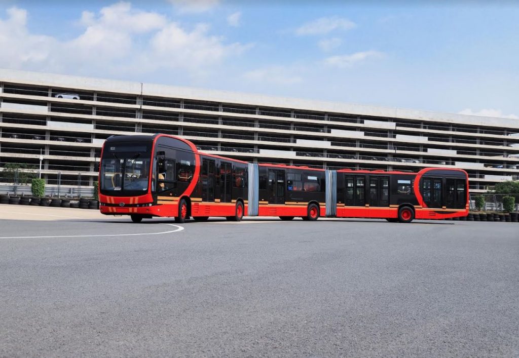 BYD presentó este lunes 1 de abril en su sede principal en Shenzhen, China, el bus K12A, el primer autobús biarticulado 100% eléctrico del mundo. Con una capacidad de 250 personas, es el vehículo eléctrico más largo, con 27 metros, fabricado actualmente.