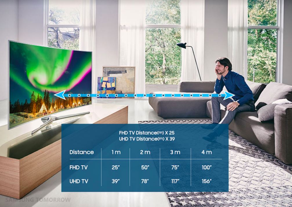 Tomada de las pantallas de cine, la curvatura en las pantallas ofrece un efecto envolvente y campo de visión ampliado, para brindar un efecto panorámico que hace que la pantalla del televisor parezca más grande de lo que es.