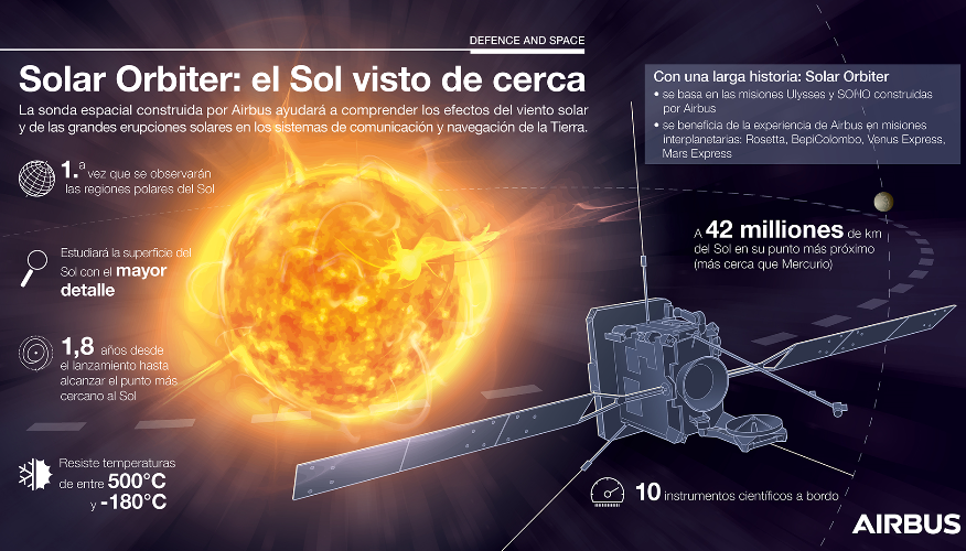 Solar Orbiter, la sonda espacial para la exploración del Sol construida por Airbus, ha sido lanzada con éxito desde Cabo Cañaveral, Florida, a las 23:03 hora local.