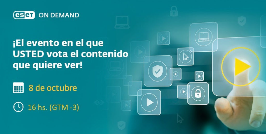 ESET invita a participar de su evento gratuito y abierto de conferencias de seguridad informática, en el que el contenido a presentar lo elige la audiencia. Se llevará a cabo de forma virtual el próximo jueves 8 de octubre a las 16hs (GTM-3) 2:00PM Colombia. Para registrarse ingresar a: https://www.eset.com/latam/acerca-de-eset/eventos/on-demand/